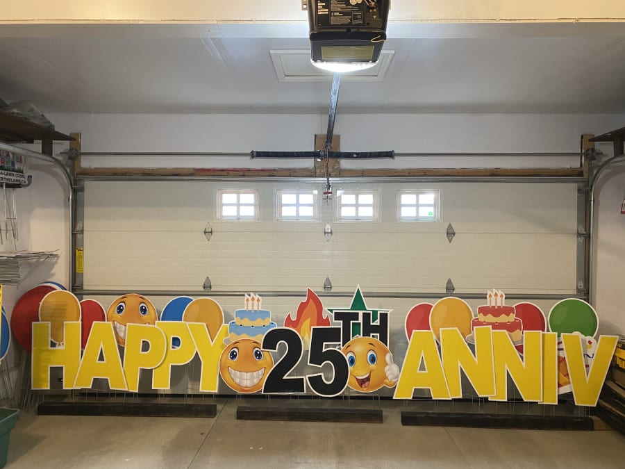 Please note we are abbreviating some lawn displays in the winter months in order for all letters to fit on the stands. ex HAPPY BDAY, HAPPY ANNIV, HBD etc.
