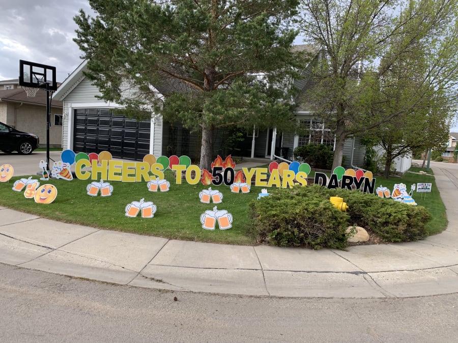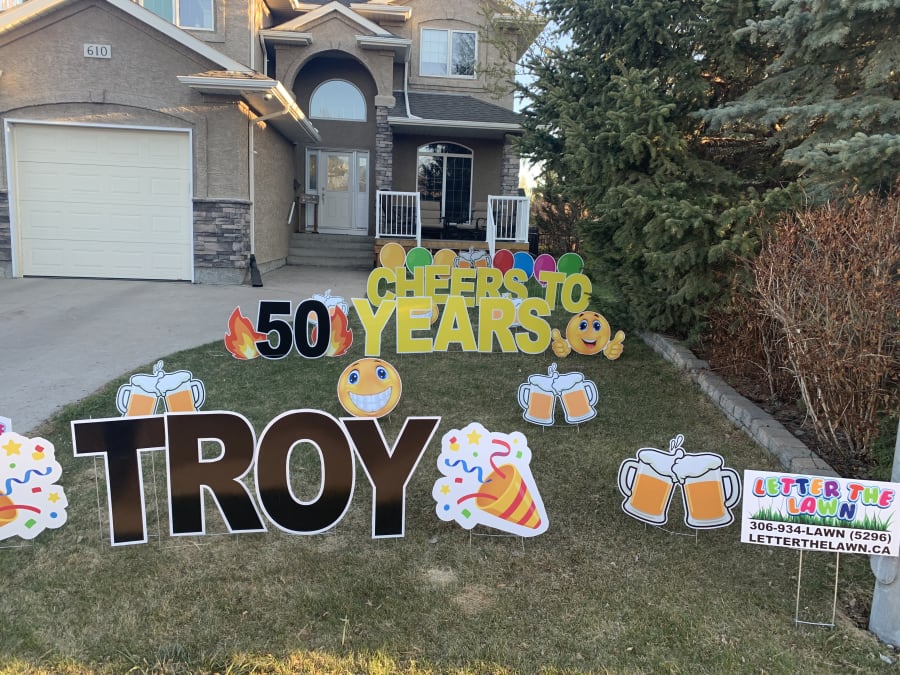 Why not go that extra mile and put a name on the lawn! For a extra $25.00 you can customize any yard greeting display how you wish with names.